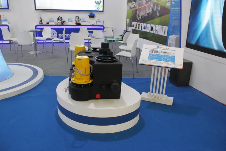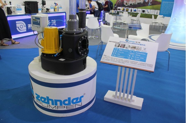 這一處展臺(tái)從左到右展品分別為澤德SWH190污水提升器、UFB200污水提升器、EPD增壓泵、E-ZW 65KS潛污泵,都是家用領(lǐng)域排水泵產(chǎn)品。